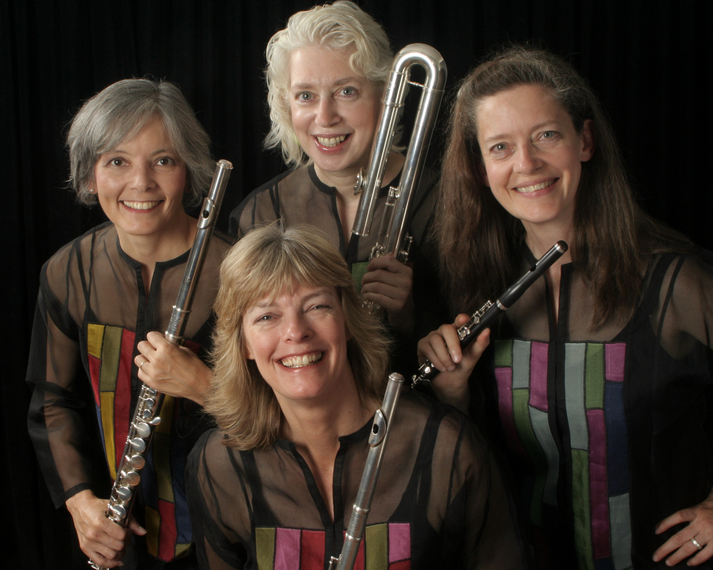 Flute Force is a New York City based flute quartet, recognized by critics for its innovative programming and virtuosic performances. Flute Force has performed throughout the United States and Canada at venues such as Carnegie Weill Recital Hall, Merkin Concert Hall and the San Francisco Museum of Art, numerous universities including Yale and Johns Hopkins, and in convention performances for the National Flute Association, the Australian Flute Festival and the New York Flute Club. The group has collaborated in concerts with flutists Julius Baker, Paula Robison and Keith Underwood, and has appeared on National Public Radio, New York Public Radio and on New York and New Jersey Public Television. Its present members are Rie Schmidt, Sheryl Henze, Kathleen Nester and Wendy Stern. Listen here.